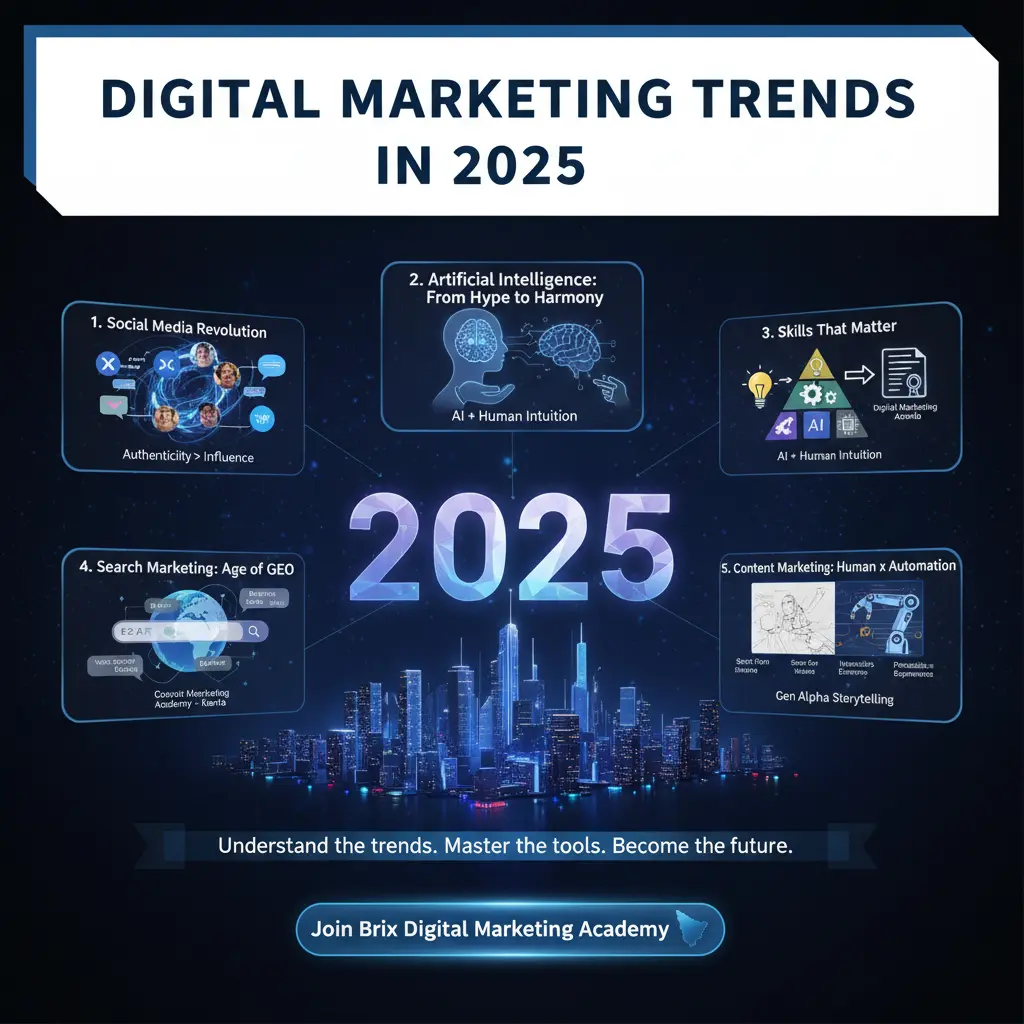 We will discuss the top five digital marketing trends in 2025 through this blog and also clarify how being up-to-date with Best Digital Academy in Kerala – Brixads Digital Marketing Academy can help you to be at the peak of your game.